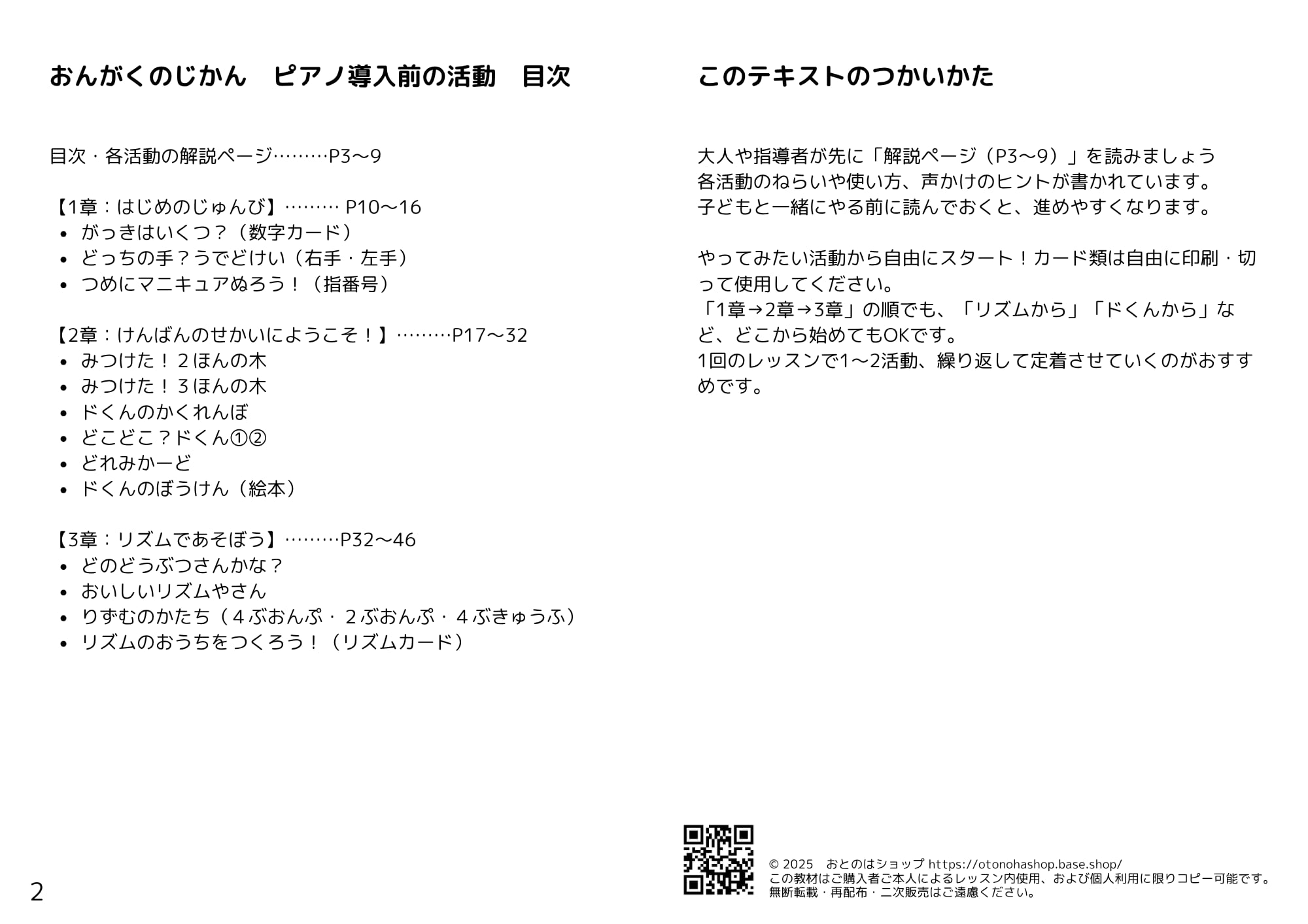 指導者にもやさしい「使い方」ページつき