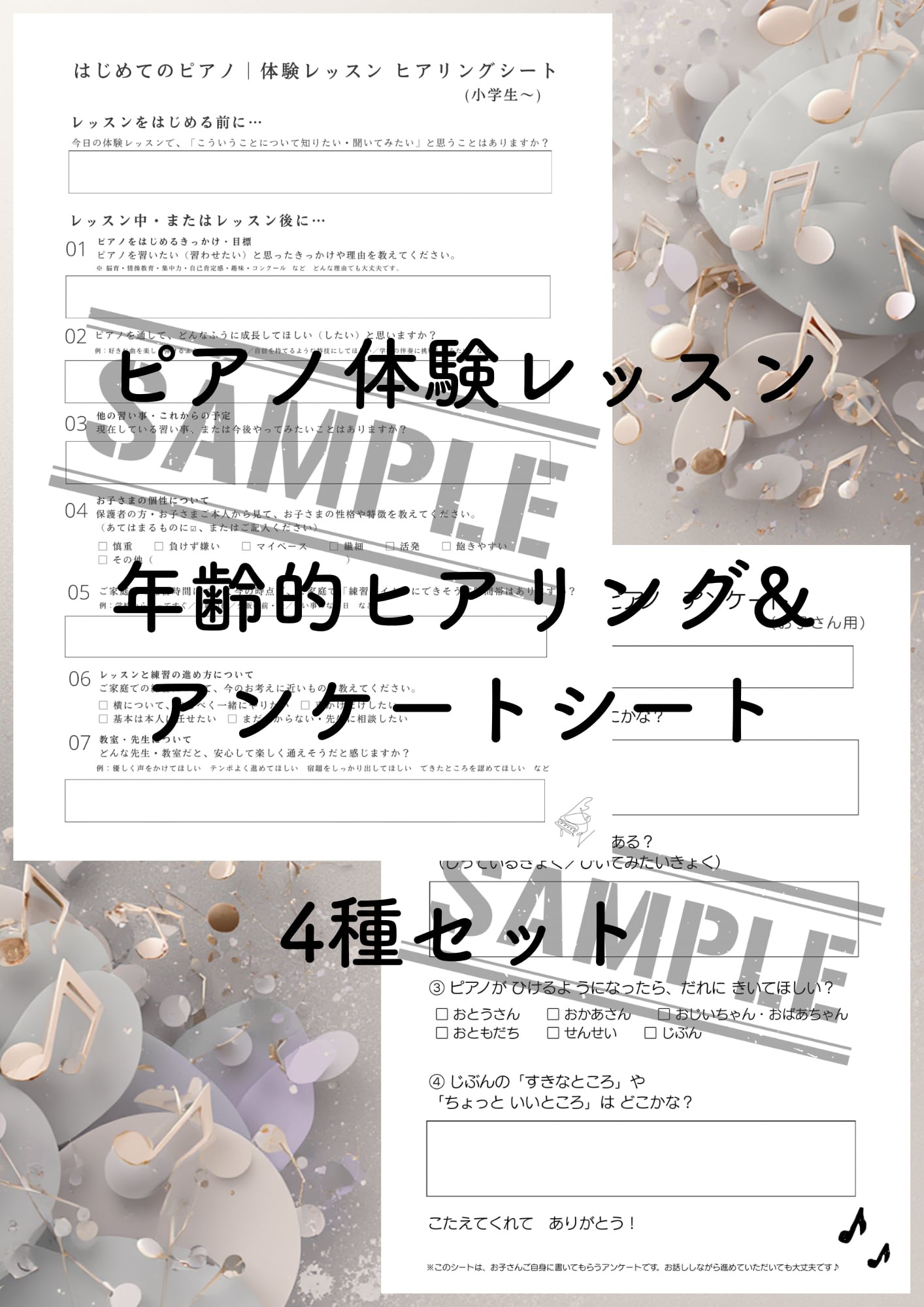 年齢別ヒアリングシート&お子さま用アンケートのセットです。